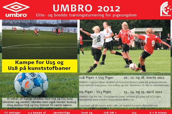 Op mod 1500 fodboldpiger fra U9 til U18 vil i marts og april sætte kurs mod Horsens. For 16. år i træk inviterer FC Horsens nemlig til Umbro Cup, som er en af de største træningsturneringer for piger  i Danmark.