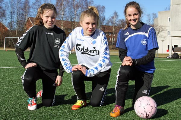 Ellen Halldorssen, Jo Fagerlund og Solveig Valbjørn Knudsen er blandt de 25 piger, som pt. er med i DBUs U14-samling for Sjælland Øst. Forleden var de til træningssamling ved DBU-hovedkvarteret i Brøndby, hvor FODBOLD FOR PIGER mødte dem til en snak om at være konkurrenter, om DBU-træning og om fodboldambitioner