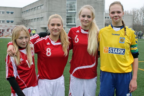 De var trætte men i højt humør, de fire spillere, som FODBOLD FOR PIGER fik en snak med efter søndagens træningskamp mellem HGIs bedste U15-piger og U14-talenterne fra DBU Sjælland Øst.