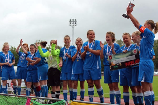 Næsbys U15-piger fejrer pokalsejren. Foto: Næsby