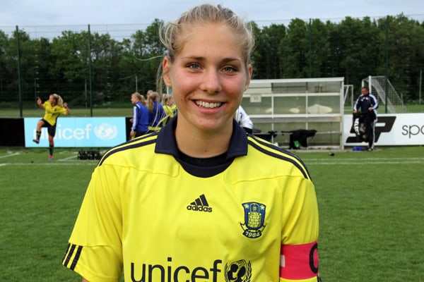 Caroline Fahnøe som anfører for Brøndbys U18 DM-hold. Nu skifter hun til B93-HIK-Skjolds 3F Ligatrup.
