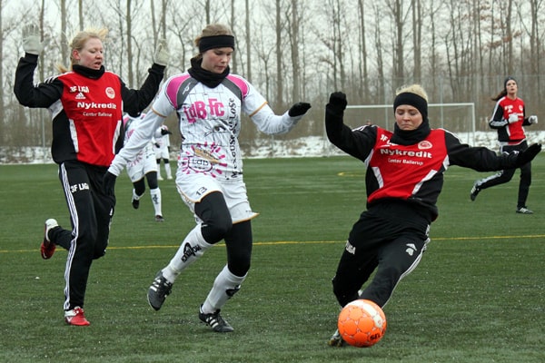 FOTO: BSF har efterhånden tradition for at spille træningskamp i vinterpausen mod LdB FC Malmø. Billedet her er fra en kamp i januar 2012 på BSFs baner i Ballerup. Foto: Steen Trolle