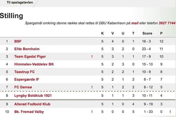 Den aktuelle stilling i DBU Sjællands U18 2. division.