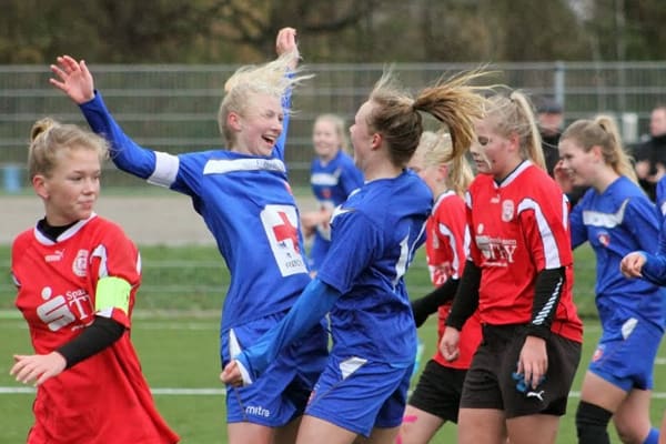 På Koldings nye kunstgræsbane viste hjemmeholdet forrygende spillehumør fra første fløjt, og efter bare et minut stod der 1-0 på et mål af anfører Nadja Vinkel Jensen.