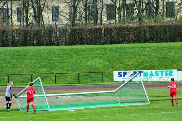 Det blæste hidsigt i Aarhus i torsdags, da Skovbakken og KoldingQ spillede topkamp i U18 DM Ligaen. Vinden var så kraftig, at KoldingQs mål væltede ni minutter inde i første halvleg, hvorefter dommeren måtte afbryde kampen, mens målet blev sat på plads.