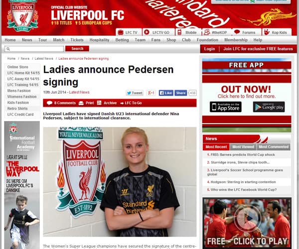 “Jeg har altid haft ambitioner om at spille i England, så at skrive under med de forsvarende mestre var selvfølgelig en kæmpe mulighed for mig, som jeg ikke kunne afslå,” siger Nina Frausing Pedersen til klubbens hjemmeside.