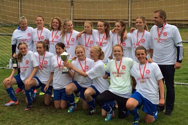 Der er tale om U15-pigerne fra FC Thy Piger, som er alliance mellem Thisted FC og en række lokale klubber. Mesterskabet de fejrer, er den jyske U15 Mesterrække 2, som FC Thy Piger vandt i fredags, efter at have slået Dybbøl IU i finalen på Invita Arena i Bording.