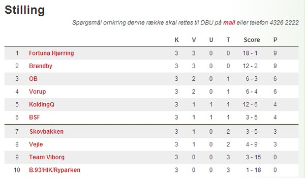 Fortuna Hjørring og Brøndby fortsætter hvor de slap i 3F Ligaen i sidste sæson: Begge hold hentede endnu en sejr i weekenden, og sidste års guld- og sølvvindere har dermed maksimumpoint efter tredje runde. Fortuna vandt ude med 1-0 over Skovbakken og Brøndby hentede en 5-2-sejr ude mod KoldingQ.