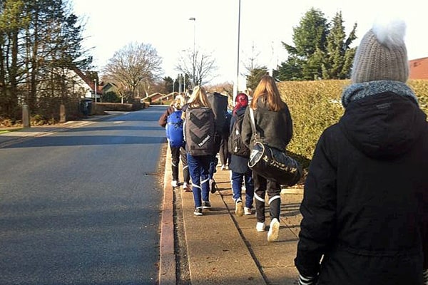 Efter træningen var der frokost i klubhuset, efterfulgt af den første fysiske opgave – 10,8km march til overnatningsstedet i Ruedam spejderhytte. På vejen blev gruppen stillet overfor forskellige valg, man kunne blandt andet få valget mellem Faxekondi til deling eller at få fem styk bagage med i en bil osv. Gruppen valgte konsekvent at beholde al deres bagage og alle mand på vejen, hvilket var det store mål fra trænergruppens side, så man kunne styrke sammenholdet.