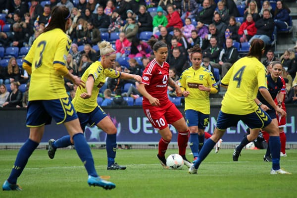 I søndags vandt tyskerne 7-0 i Frankfurt, og lørdag fortsatte Frankfurt målfesten på Brøndby Stadion og vandt 6-0. Fem af målene blev scoret i første halvleg, mens Brøndby var langt bedre med i anden halvleg, som kun gav en enkelt scoring til tyskerne.