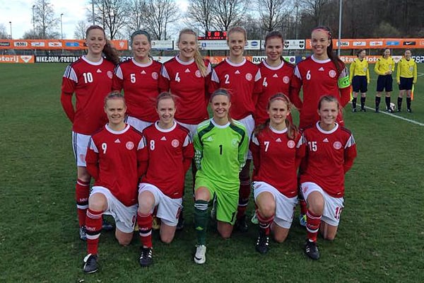 På en blæsende og kold bane i Landgraaf i Holland åbnede Danmark godt, og efter 14 minutter kunne Emilie Henriksen gøre det til 1-0. Danmark fortsatte derefter med at presse og havde flere store muligheder, men kampen skulle hen i det 42. minut, inden Signe Bruun fik gjort det til 2-0.
