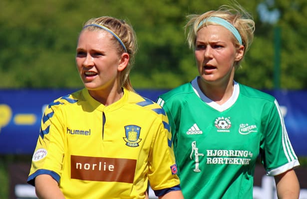 FOTO: Brøndbys Amalie Thestrup og Fortuna Hjørrings Luna Gevitz er med i truppen, der skal møde Finland den 26. august.
