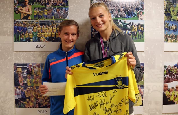 Men bortset fra denne ’detalje’, så har det uden tvivl været en fed aften for Laura. For Brøndby er et af Lauras yndlingshold i 3F-ligaen, og hun var den heldige, som blev udtrukket som vinder af Brøndby og FODBOLD FOR PIGERs Champions League-konkurrence.