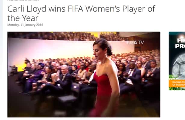 Her blev Carli Lloyd kåret sammen med Lionel Messi, som for femte gang blev verdens bedste mandlige fodboldspiller, og USAs kvindelandstræner Jill Ellis, der blev kåret til verdens bedste kvindelige landstræner i 2015.
