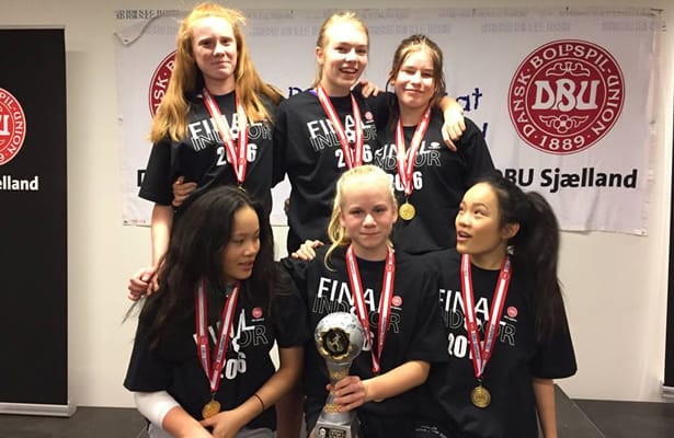 Ringsted Damefodbolds U15-piger havde guld om halsen, da de søndag aften tog hjem fra DBU Sjællands Final Indoor-stævne i Roskilde-hallerne.