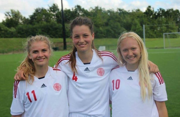 Linnéa Borbye (tv.), Amalie Littau (mf.) og Rosa Horskjær (th.) er blandt de 29 spillere fra årgang 2001 som den nye U16-landstræner Frank Johnsen har udtaget til at deltage i årets første samling for U16-landsholdet.