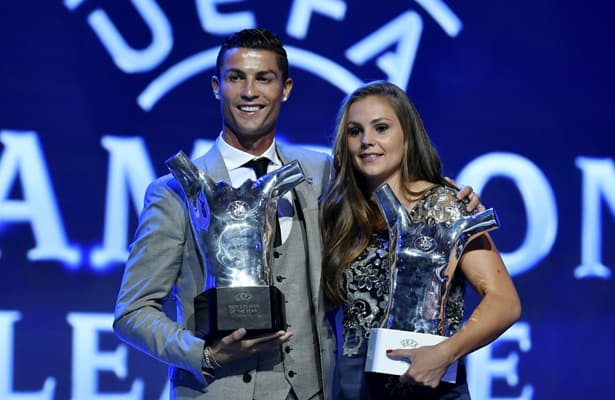 Prisern som Men s Player of The Year og Womens Player of The Year uddeles hvert år ved et stort UEFA-arrangement i Monaco i slutningen af august. Sidste år vandt Christian Ronaldo og Lieke Martens priserne. Foto: Harold Cunningham - UEFA/UEFA via Getty Images)