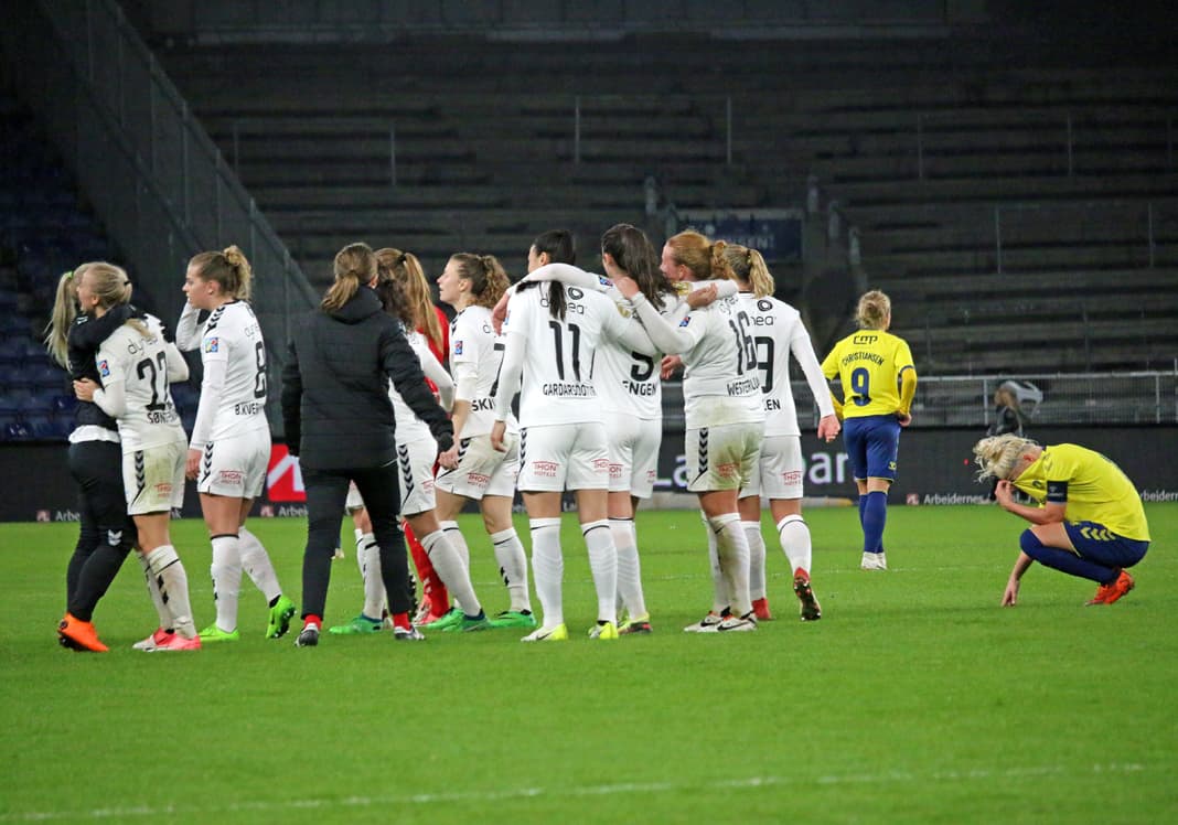 Det så ellers længe ud til, at Brøndby denne gang skulle have held til at slå nordmændene. Hjemmeholdet spillede sig til flere store chancer og adskillige hjørnespark og var klart det bedste hold i de første 69 minutter. Men så gik det galt. Først gjorde Anja Sønstevold det til 0-1, da hun sendte et hovedstød i mål efter en dødbold, og 10 minutter senere sendte Synne Skinnes Hansen Brøndby ud i mørket med en scoring til 0-2.