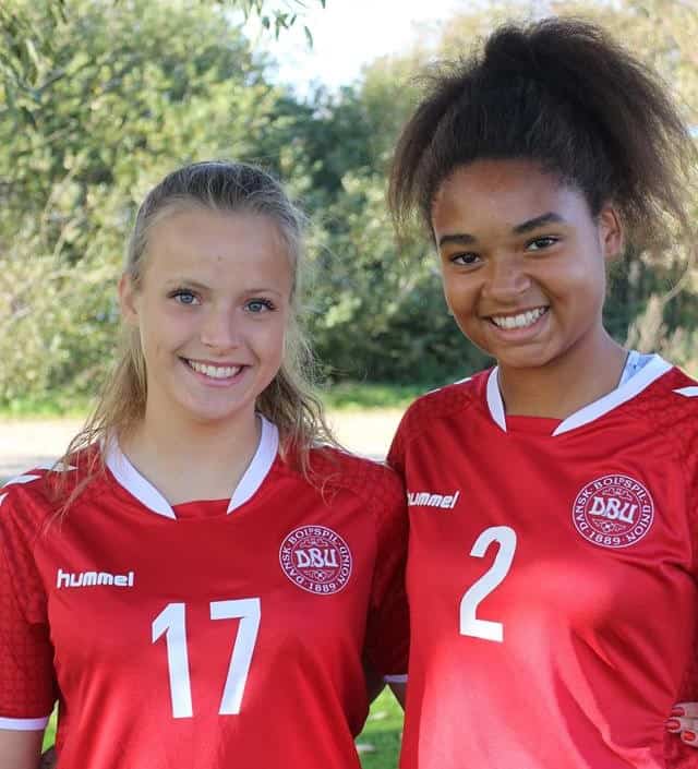 De to KoldingQ-spillere Emilie Prüsse og Isabella Obaze er blandt de udtagne. Her ses de som U17-landsholdsspillere i 2018. Foto: DBU