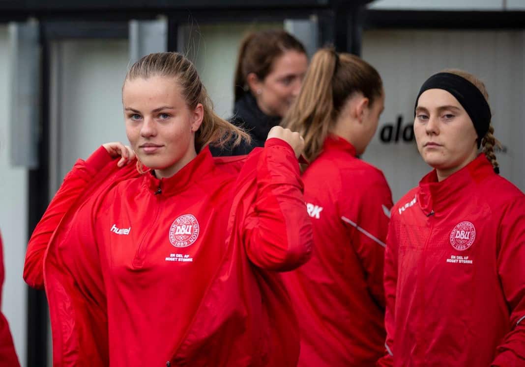 ”Jeg fik tilbuddet om at komme ind på en sportsskole i Herning, hvor jeg skulle vælge, hvad jeg ville. Der valgte jeg fodbold og kom ind,” siger hun om beslutningen. Det endte med at blive en god beslutning for den unge fodboldspiller. Hun blev nemlig udtaget til U16-landsholdet og senere U19-landsholdet.