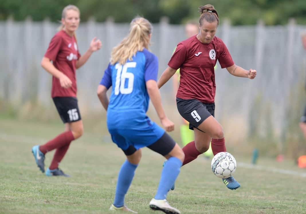 Koldinggenserne fik samlet masser af selvtillid i kampen mod B.93. Signe Boysen scorede efter fem minutter og startede målfesten for hjemmeholdet. Der skulle dog gå noget tid, før målnettet hos B.93 igen rørte på sig. Det skete efter 30 minutter, da Signe Boysen efter en assist af Caroline Ahrendtsen Jensen scorede til 2-0.