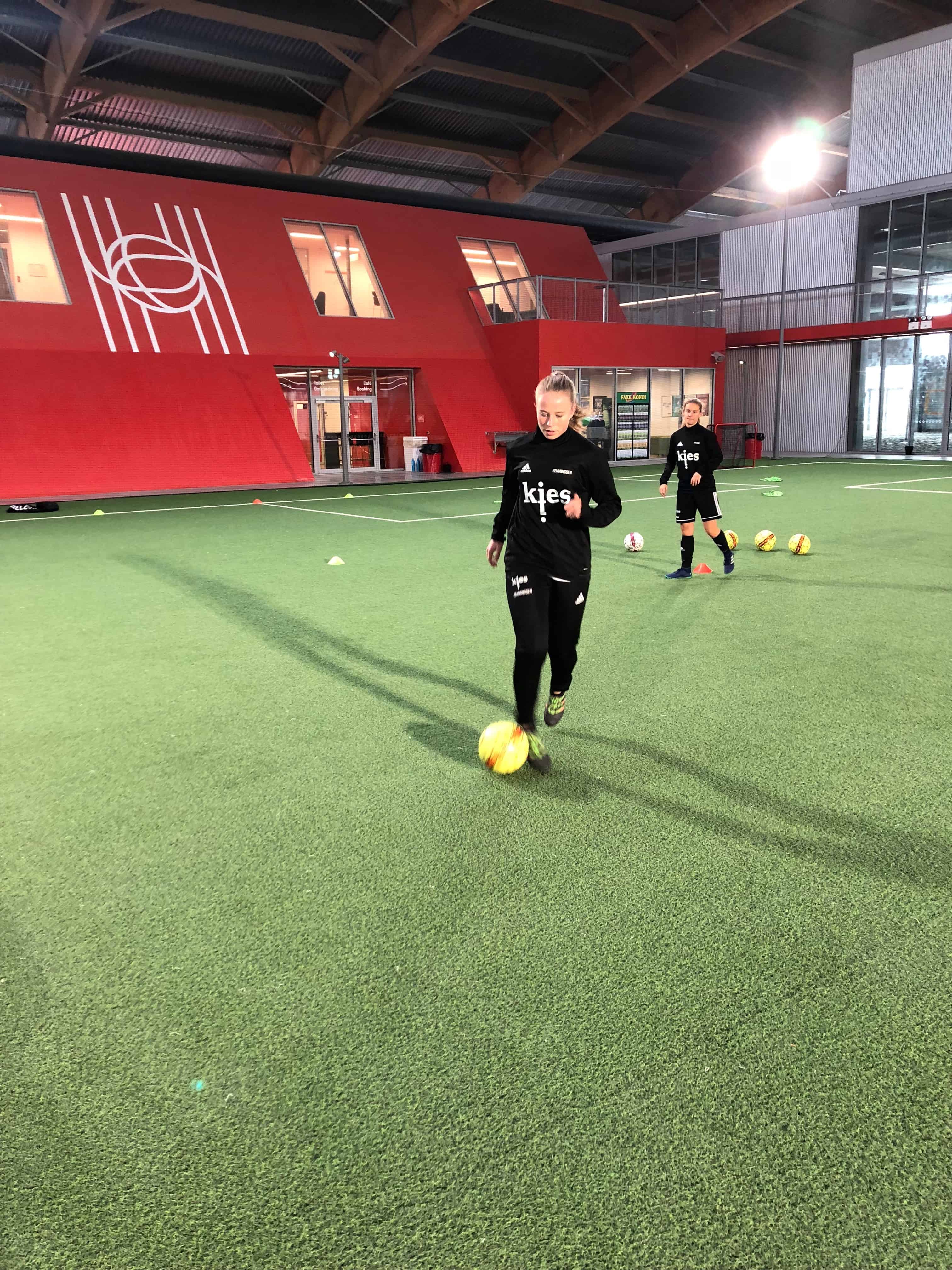 Fodboldpigerne træner jævnligt med drengene for at blive matchet på bedste vis, og det er noget pigerne virkelig har udviklet sig af. Om tirsdagen styrketræner pigerne, og de går til den med krum hals. Vores fysiske rammer med den nye Hafnia Hal har løftet vores niveau betydeligt og vi ser frem til at udvikle flere fodboldpiger i de kommende år.