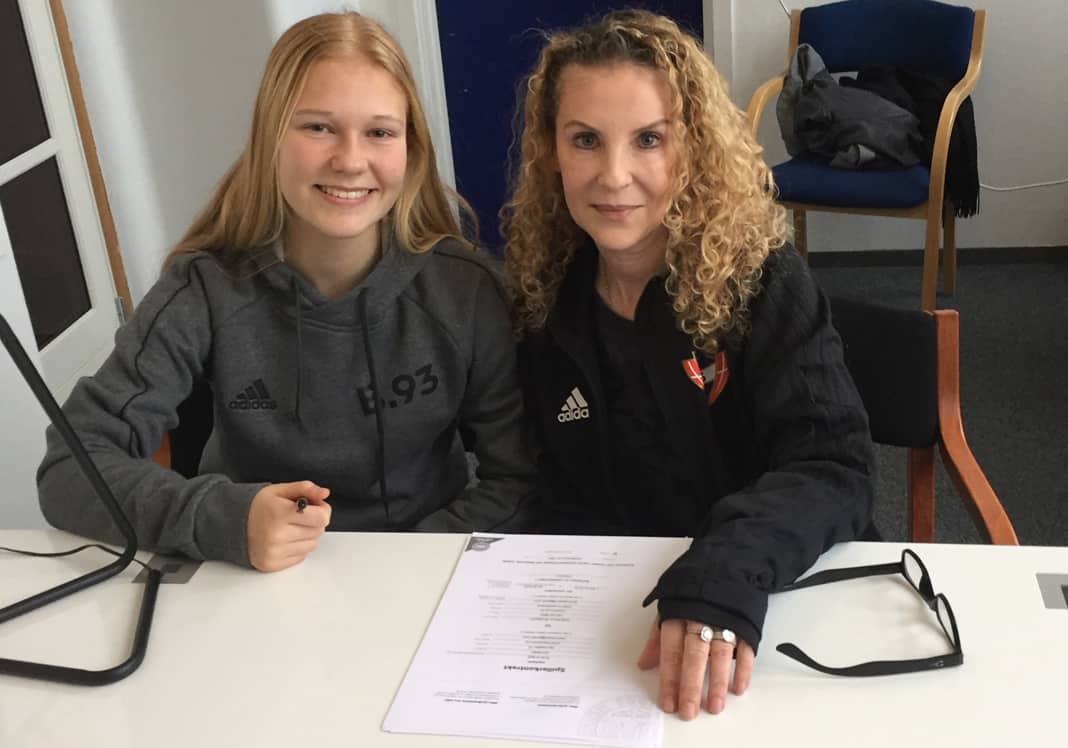 Hun topper lige nu topscorerlisten i U18 DM-ligaen, hun kaldes et af dansk pigefodbolds største talenter – og nu har hun fået sin første seniorkontrakt.