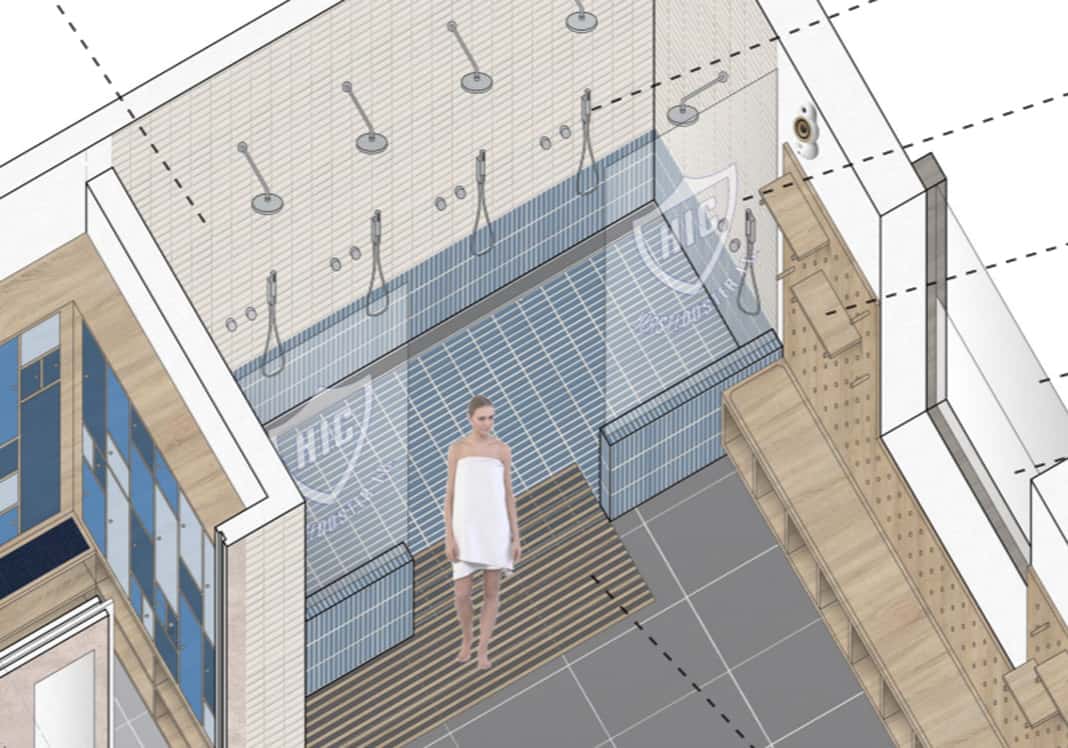 Nedenfor kan du se det endelig bud på nye omklædningsfaciliteter i HIC. Målet er, at omklædningsrummet skal styrke fællesskabet, men også respektere spillernes ønske om at kunne være lidt mere private. Som Keingart skriver: