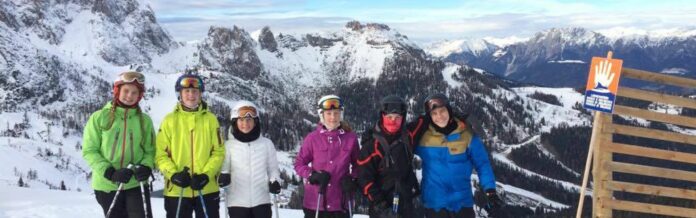 Billedet er fra VIES’ skitur i skoleåret 2014. Karen er nummer to fra venstre, mens Sara er nummer fire fra venstre.