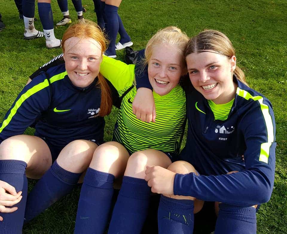 Marie Grøn-Iversen (t.v.) fra Silkeborg Q valgte i august 2018 at starte på Aabybro Efterskoles fodboldlinje, selv om hun de seneste 2 år har døjet med en alvorlig rygskade. Læs hendes fortælling her.