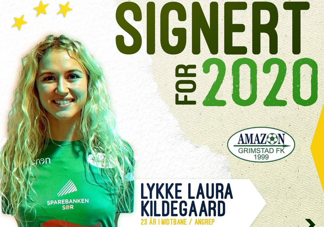 Endnu en dansker skal prøve kræfter med norsk kvindefodbold. Det er den 23-årige angriber Lykke Laura Kildegaard, som i midten af januar skrev kontrakt med Amazon Grimstad FK, der spiller i 1. division, den næstbedste række i Norge.