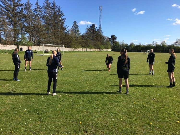 Træningen foregik i Frøstrup i grupper på 9 piger og én træner. Kl. 17 trænede fire grupper, og kl. 18.45 trænede fire nye grupper. Alle pladser var hurtigt fyldt op.