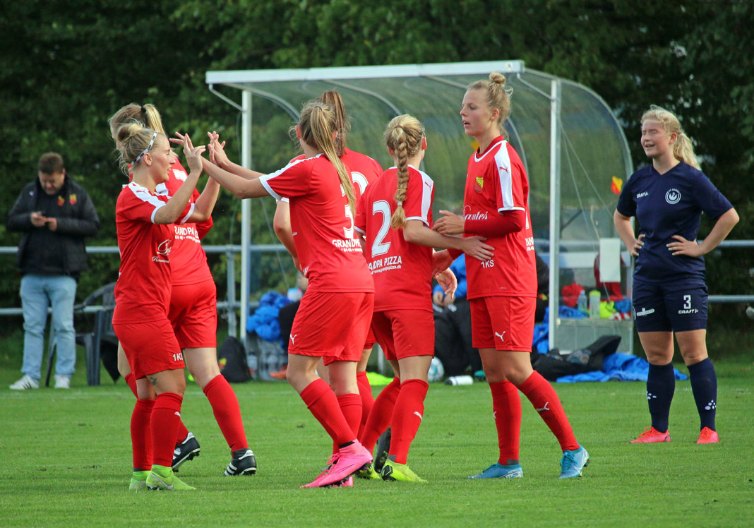 Kvinderne fra Solrød FC vandt 5-0 på over FC Damsø i 1. divisions nedrykningsspil. Ida Hove og Amalie “He” Hansen scorede begge to gange.