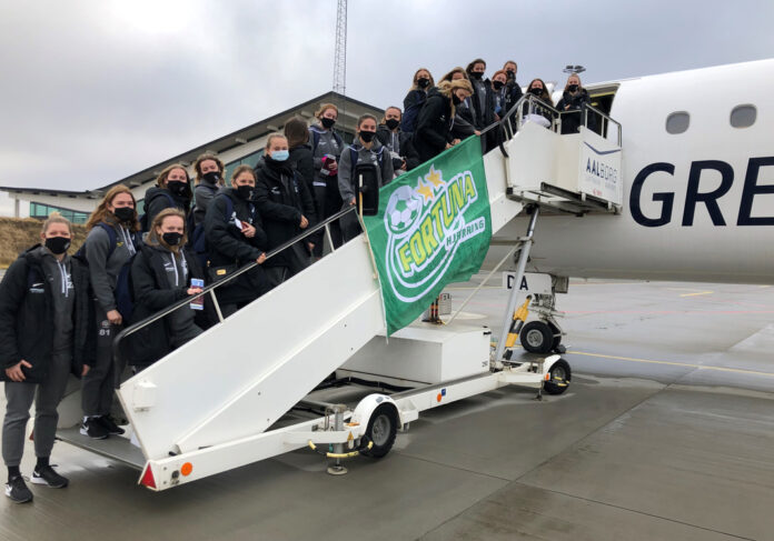 Det var en Fortuna-trup fuld af forventninger og spænding, som tirsdag lettede fra lufthavnen i Aalborg med kurs mod Barcelona. Her skal de danske mestre onsdag spille den første af to ottendedels-finaler i UEFA Womens Champions League mod det spanske storhold Barcelona, der har spillet sig frem til ottendedelsfinalen efter en samlet sejr på 8-2 over franske PSV.