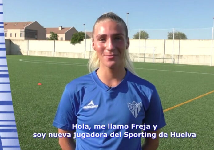 På det tidspunkt var det ikke offentliggjort, hvilken klub Freja Abildå skifter til. Blot stod der, at “hun selvfølgelig ikke skal spille for en anden dansk klub”. Men fredag blev sat navn på. Det skete med Youtube-video, hvor man ser Freja træne med sine nye holdkammerater i Huelva og hvor hun præsenterer sig som spiller.