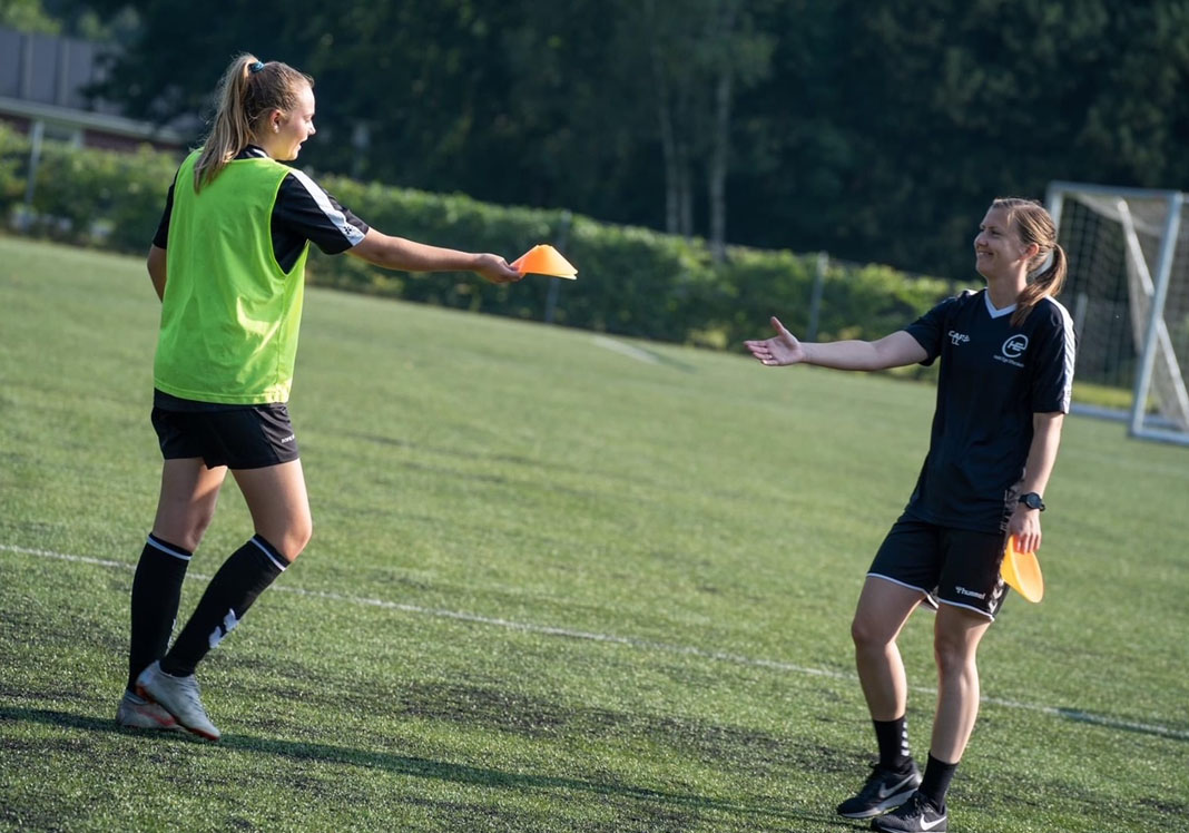 Udover mit job på Hald Ege Efterskole er jeg træner for U16 DM-pigerne i Viborg Q – en klub hvor flere af vores elever spiller enten u16 eller u18. Det gør, at jeg sammen med pigerne kan planlægge og tilrettelægge deres træningsuger, så det hele går op i en højere enhed. Hvis der er kamp i klubben om aftenen, kan de blive sparet til træning på skolen, og omvendt kan vi tage højde for, når der spilles efterskolekampe. Det giver også mig som træner begge steder muligheden for at have endnu mere tid til spillerne, da jeg ser dem begge steder og på den måde har mulighed for at udvikle og hjælpe dem endnu mere.