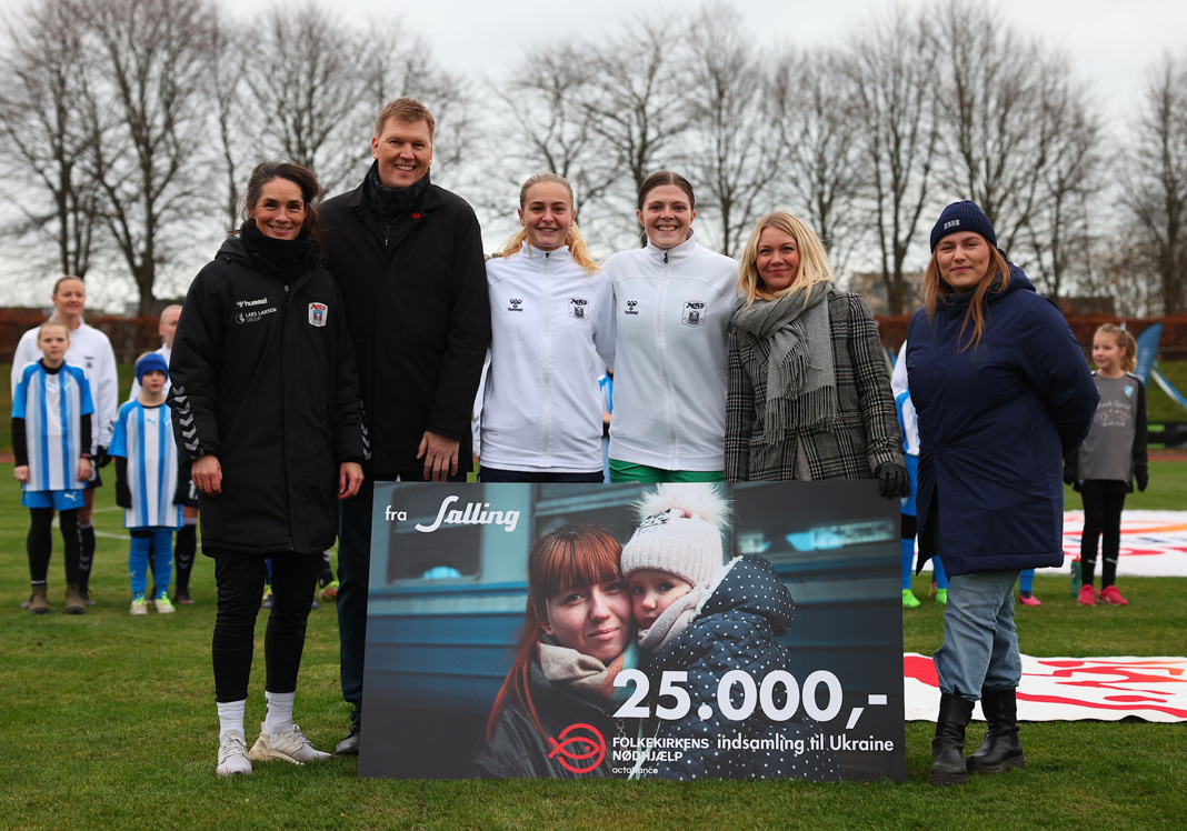 Der blev overrakt en check på 25.000 kroner til krigens ofte i Ukraine, inden der lørdag blev spillet kvindeliga-kamp mellem AGF og Sundby