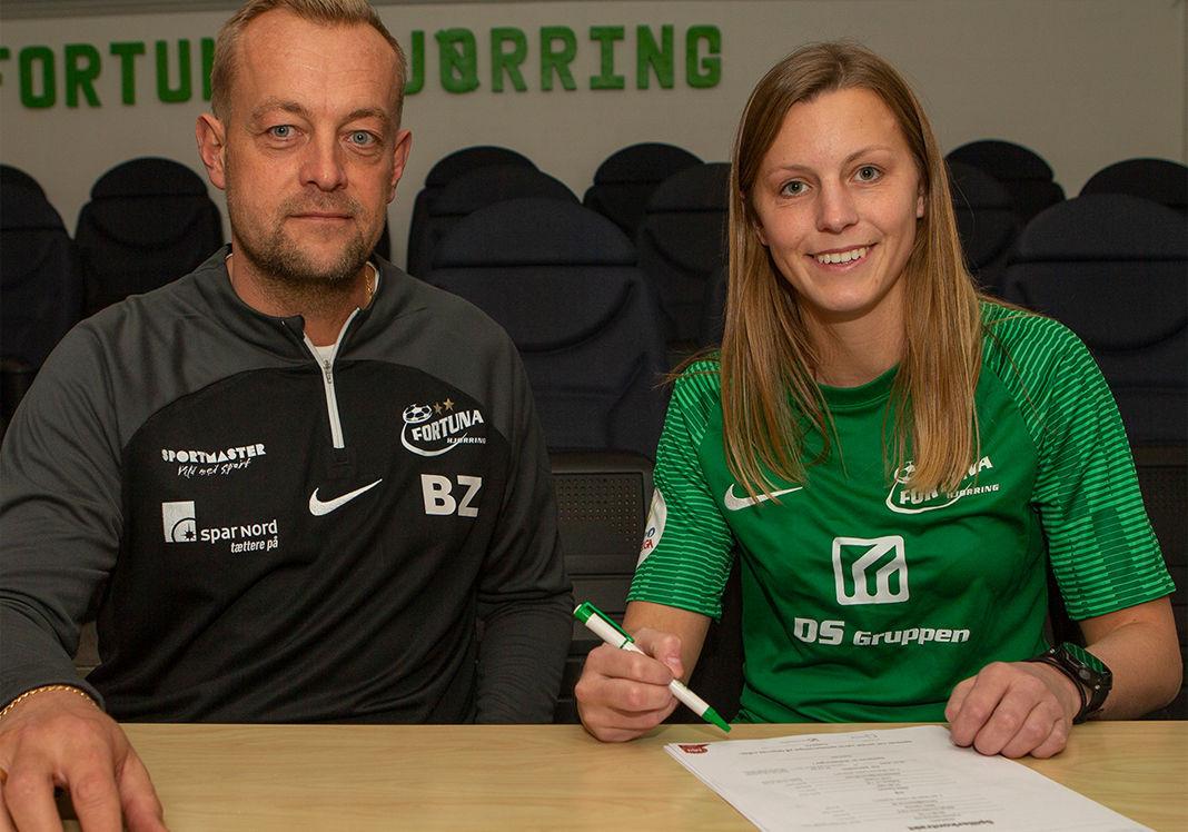Cheftræner Bo Zinck og Fortunas nye angriber Rikke Dybdahl. Foto: Jess M. Madsen