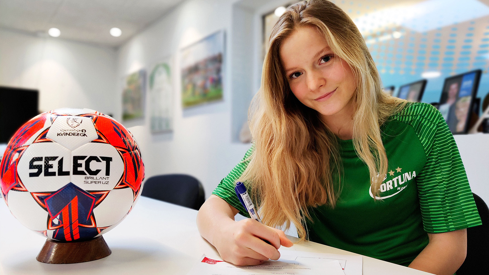 Foto: Signe Duun underskriver sin første ungdomskontrakt med Fortuna Hjørring