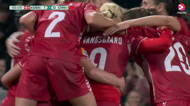 SE HØJDEPUNKTERNE: Amalie Vangsgaard scorede i sidste minut og sikrede dermed en sejr til Danmark i den første kamp ved VM