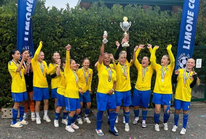 11-mandsholdet fra Brøndbys U15-piger vandt deres turnering ved sidste uges Limone Cup i Italien. Foto fra Facebook