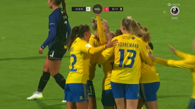 Kristín Dís Árnadóttir har scoret til 2-0. Screenshot fra Viaplay