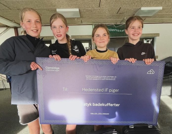 SPONSORARTIKEL | Pigerne i Hedensted IF fik sig en overraskelse onsdag aften i forbindelse med træningen, da de fik besked om, at de i år er modtagere af Gjensidige Drømmelegat. Legatet består denne gang af et sæt såkaldte ”bade-kufferter”, som skal gøre det sjovere og mere naturligt for pigerne at deltage i fælles omklædning efter træning.