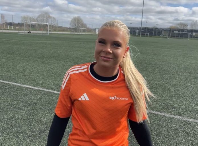 "Efterskole er et fantastisk år, og du kan sagtens gå på efterskole og stadig udvikle dig indenfor fodbolden," siger Caroline. Foto: BGI akademiet