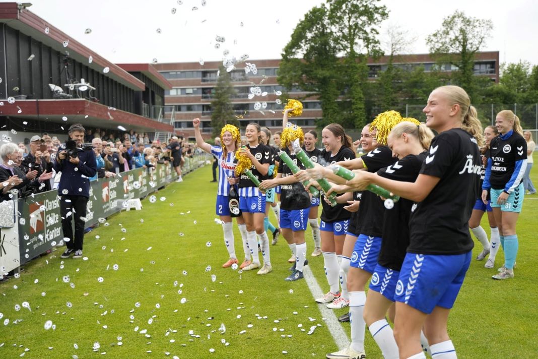 B.93 er nummer to i rækken, og hvis københavnerne vinder deres kamp søndag eftermiddag over AaB, så snupper de den anden plads i kvindeligaen. Dermed kan OB og B.93s kvinder indtage den bedste række, mens de samme klubbers herrer har udsigt til at en sæson, hvor de skal møde hinanden i den næstbedste række.