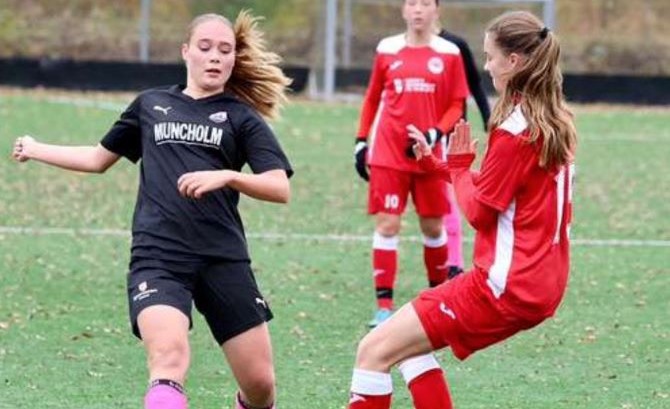 Vi har 3 træninger om ugen også har jeg også 3 træninger i Viborg Q. Jeg synes det er en fed balance at få forskelligt træning, både forskellige trænere men også med forskellige spillere. Derudover har jeg fået mulighed for at træne 1 gang om ugen med et drengehold på skolen som jeg synes er megafedt og har udfordret mig på en anden måde.