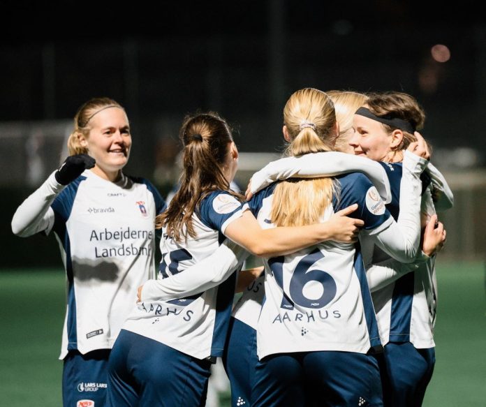 AGF har ikke haft den bedste start i Gjensidige Kvindeliga, men onsdag aften fik aarhusianerne noget at juble over, da holdet vandt over OB Q og nu er videre til pokalkvartfinalen. Foto: AGF