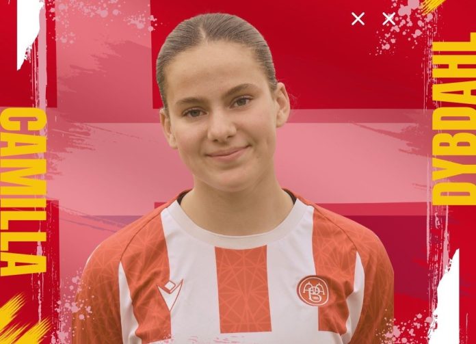 AaBs Camilla Dybdahl er blandt de 18, der er udtaget til U17-landsholdets to testkampe mod Sverige. Foto: AaB