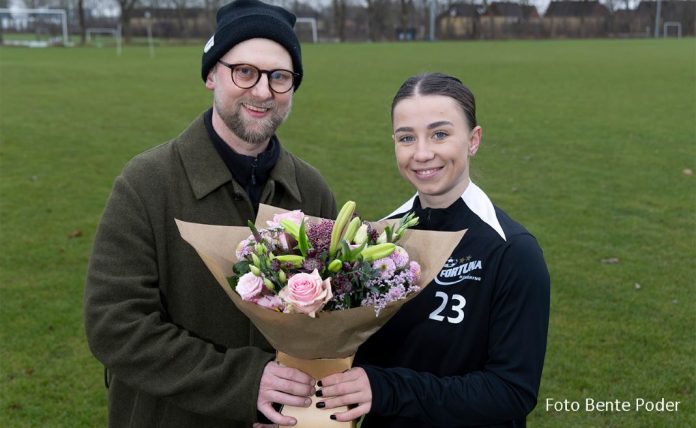 “Pobi kunne ikke skjule sin store overraskelse og enorme glæde over tildelingen. Hun videresendte en del af æren for påskønnelse til holdkammeraterne og trænerne. Nu kan Pobi glæde sig over hæder og blomster, mens hun holder en lille ferie, inden det går løs i forårets slutspil,” skriver Fortuna i en pressemeddelelse.