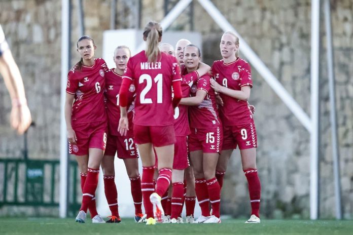Caroline Pleidrup (tv.) fik sin A-landsholdsdebut i en testkamp mod Østrig i Spanien i februar 2024. Foto: Anders Kjærbye - dbufoto.dk